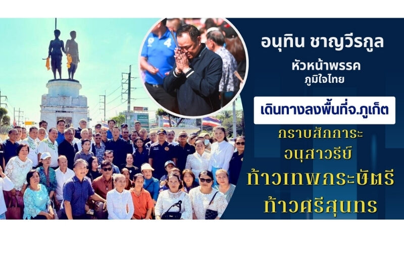 นายอนุทิน ชาญวีรกูล หัวหน้าพรรคภูมิใจไทย เดินทางลงพื้นที่จังหวัดภูเก็ต กราบสักการะอนุสาวรีย์ ท้าวเทพกระษัตรีท้าวศรีสุนทร