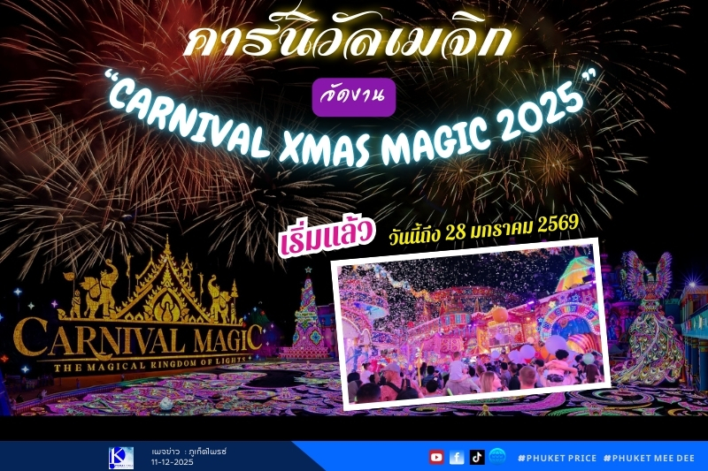 คาร์นิวัลเมจิก มหัศจรรย์อาณาจักรเมืองไฟ จัดงานเทศกาลเฉลิมฉลองส่งท้ายปีด้วยงาน Carnival Xmas Magic 2025” กับกิจกรรมคริสต์มาสและปีใหม่สุดตระการตา ตั้งแต่วันนี้จนถึงวันที่ 28 มกราคม 2569 เพื่อมอบประสบการณ์แห่งความสุข ความอบอุ่น และสีสันแห่งเทศกาลให้แก่นักท่องเที่ยวจากทั่วโลก