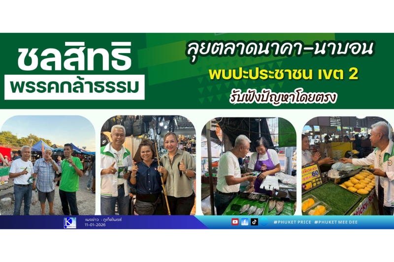 ภูเก็ต – นายชลสิทธิ แก้วยะรัตน์ ผู้สมัครสมาชิกสภาผู้แทนราษฎร จังหวัดภูเก็ต เขต 2 หมายเลข 1 พรรคกล้าธรรม ลงพื้นที่พบปะพี่น้องประชาชนและผู้ประกอบการ บริเวณตลาดท้ายรถนาคา (เจ้าฟ้าวาไรตี้) และตลาดนัดนาบอน ตำบลวิชิต อำเภอเมือง จังหวัดภูเก็ต เพื่อรับฟังความคิดเห็นและปัญหาความเดือดร้อนของประชาชนในพื้นที่
