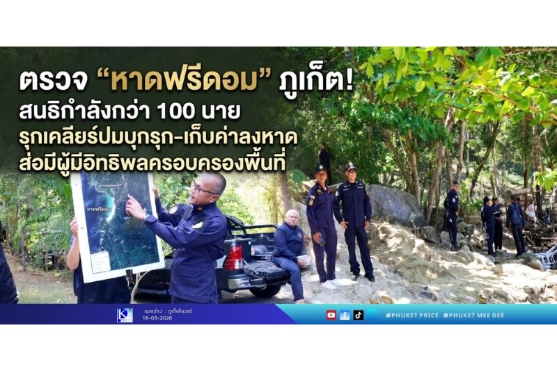 ตรวจ “หาดฟรีดอม” ภูเก็ต! สนธิกำลังกว่า 100 นาย รุกเคลียร์ปมบุกรุก–เก็บค่าลงหาด ส่อมีผู้มีอิทธิพลครอบครองพื้นที่