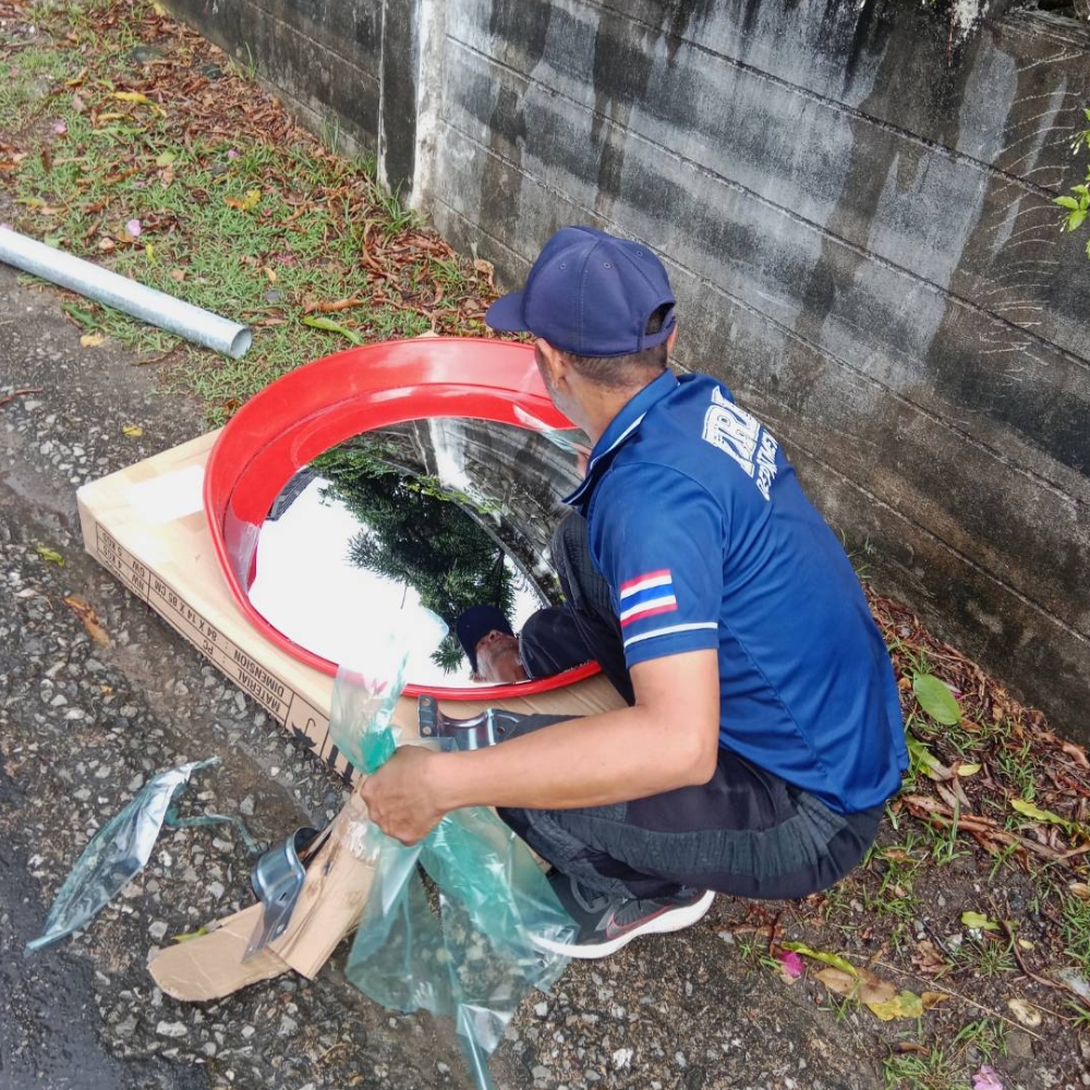 ติดตั้งกระจกโค้งเพิ่มความปลอดภัยในพื้นที่ตำบลฉลอง