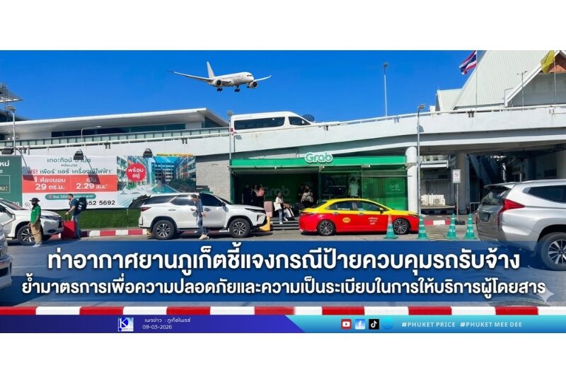 จากกรณีที่มีการเผยแพร่ภาพป้ายควบคุมรถรับจ้างภายในพื้นที่ท่าอากาศยานภูเก็ตผ่านสื่อสังคมออนไลน์ และเกิดข้อสงสัยในสังคมเกี่ยวกับการให้บริการรถโดยสารสาธารณะนั้น ท่าอากาศยานภูเก็ตขอเรียนชี้แจงว่า การติดตั้งป้ายดังกล่าวมีวัตถุประสงค์เพื่อจัดระเบียบการให้บริการรถโดยสารสาธารณะภายในพื้นที่ท่าอากาศยาน และเพื่อมิให้ผู้ให้บริการภายนอกที่ยังไม่ได้รับอนุญาตจากท่าอากาศยานภูเก็ต ที่มีเป็นจำนวนมาก จับกลุ่มใช้บริเวณดังกล่าวนี้เฝ้ารอรับผู้โดยสารหรือเสนอบริการ ซึ่งอยู่นอกพื้นที่ที่จัดไว้ให้