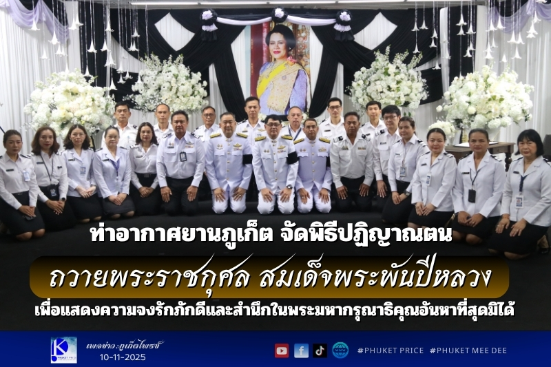 ท่าอากาศยานภูเก็ต จัดพิธีปฏิญาณตน ถวายพระราชกุศล สมเด็จพระพันปีหลวง เพื่อแสดงความจงรักภักดีและสำนึกในพระมหากรุณาธิคุณอันหาที่สุดมิได้