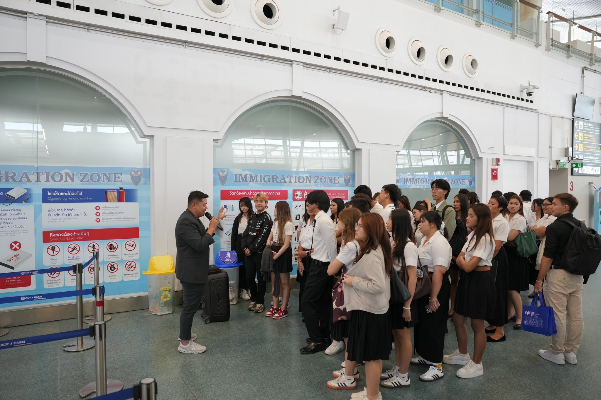ในโอกาสเข้าศึกษาแหล่งเรียนรู้ทางอาชีพเกี่ยวกับการปฏิบัติงานภายในท่าอากาศยาน โดยมุ่งเน้นการเรียนรู้บทบาท หน้าที่ และกระบวนการทำงานที่เกี่ยวข้องกับการให้บริการผู้โดยสาร การศึกษาดูงานในครั้งนี้มีวัตถุประสงค์เพื่อเสริมสร้างความรู้ และความเข้าใจ ในโครงสร้างพื้นฐาน, อาชีพ และขีดความสามารถของท่าอากาศยานภูเก็ต รวมถึงการนำเทคโนโลยีมาช่วยใช้ในการบริการผู้โดยสาร