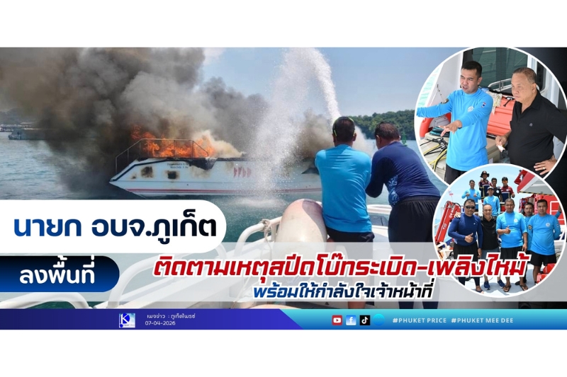 นายก อบจ.ภูเก็ต ลงพื้นที่ติดตามเหตุสปีดโบ๊ทระเบิด-เพลิงไหม้ พร้อมให้กำลังใจเจ้าหน้าที่