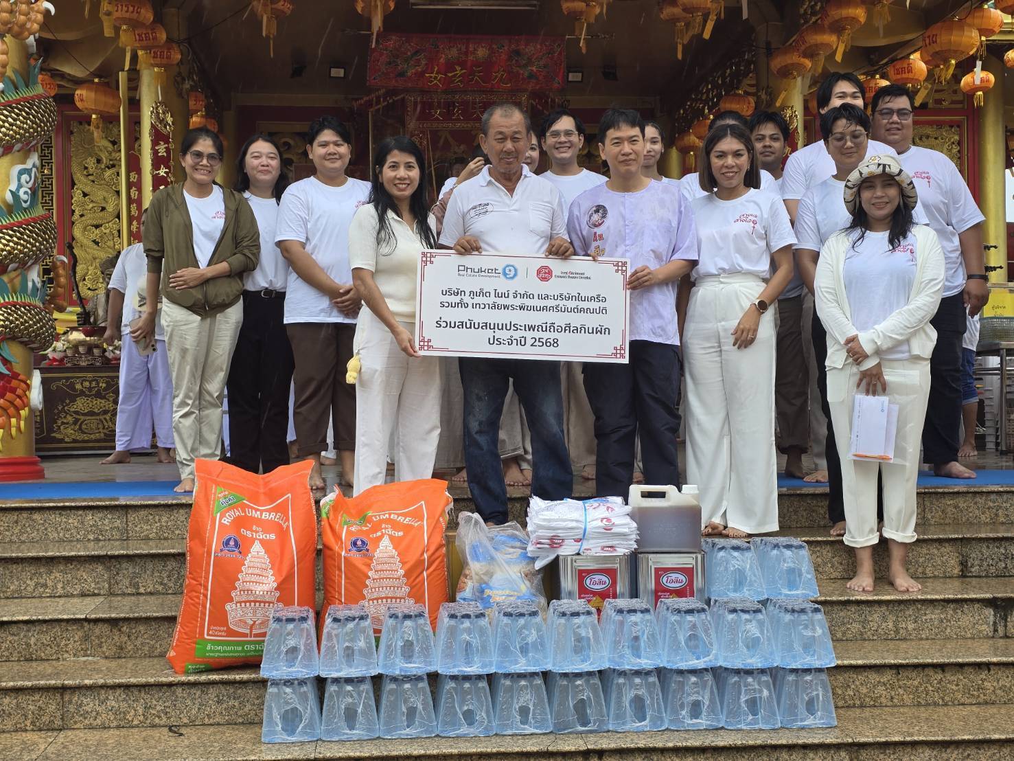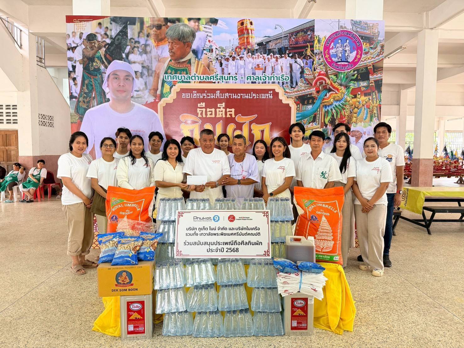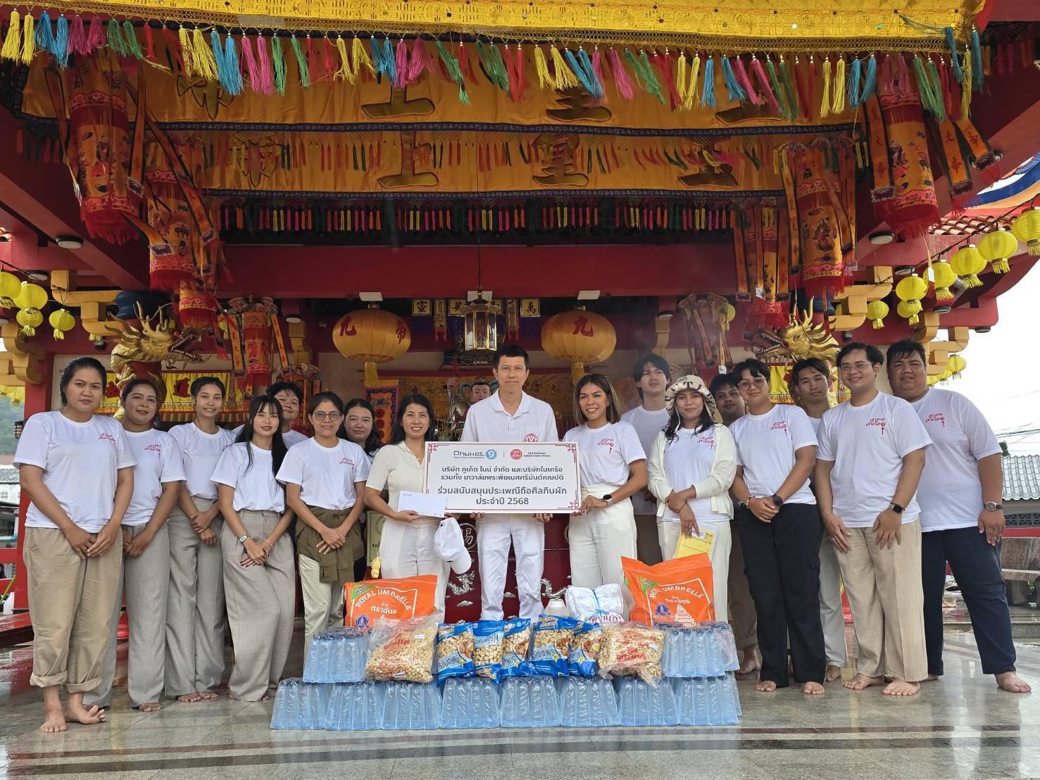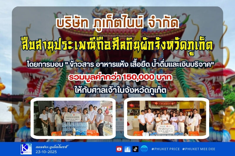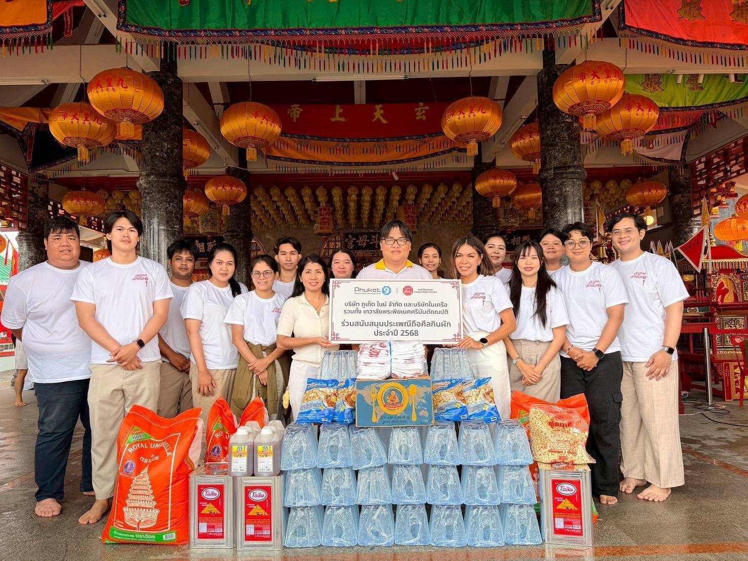 บริษัท ภูเก็ตไนน์ จํากัด สืบสานประเพณีถือศีลกินผักจังหวัดภูเก็ต โดยการมอบ ” ข้าวสาร อาหารแห้ง เสื้อยืด น้ำดื่มและเงินบริจาค” รวมมูลค่ากว่า 150,000 บาทให้กับศาลเจ้าในจังหวัดภูเก็ต ได้แก่