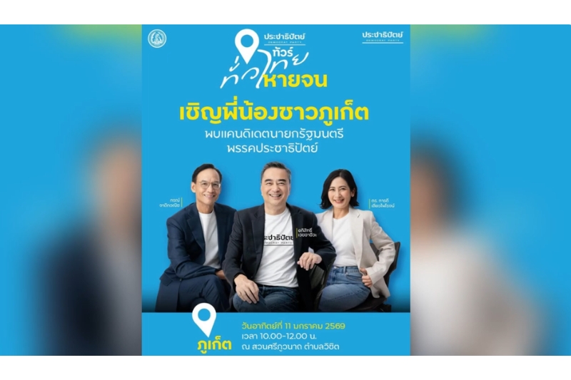 • ปชป.ชู “ภูเก็ตมหานคร” แก้ปัญหาเรื้อรัง ยกทีมแคนดิเดตนายกฯ ลงพื้นที่ภูเก็ต รับฟังเสียงประชาชน