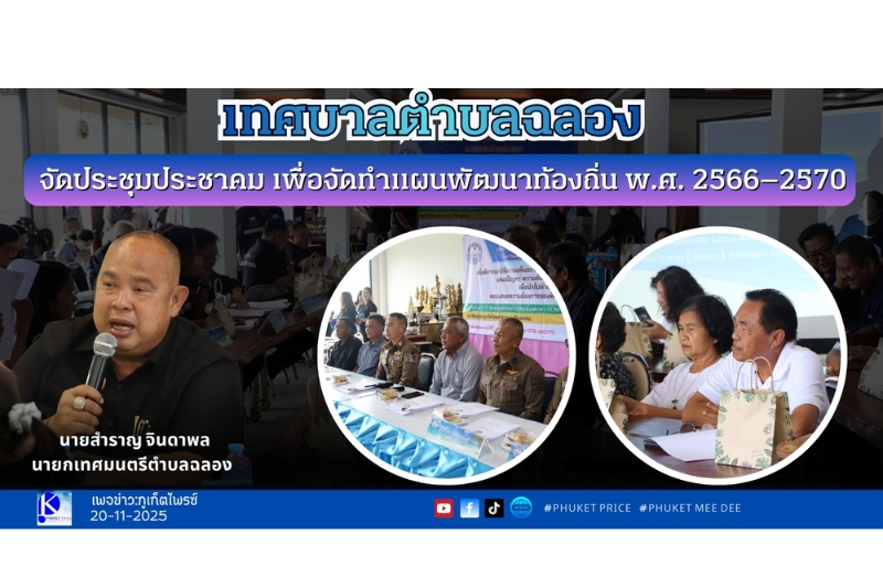 วันที่ 18 พฤศจิกายน 2568 เทศบาลตำบลฉลองจัดประชุมประชาคมเพื่อพิจารณาให้ความเห็นชอบโครงการ พร้อมเปิดโอกาสให้ประชาชนร่วมแสดงความคิดเห็น