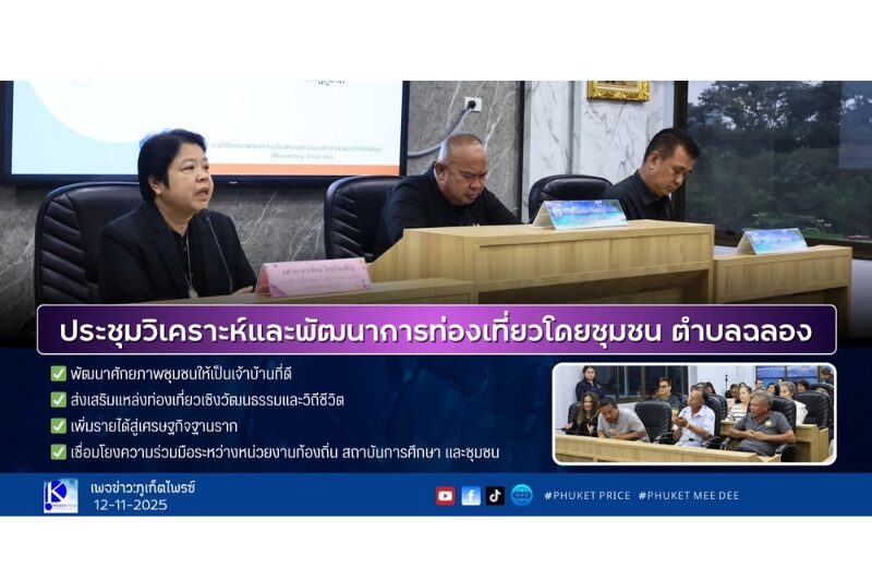 เทศบาลตำบลฉลอง โดยนายสำราญ จินดาพล นายกเทศมนตรีตำบลฉลอง ร่วมกับ มหาวิทยาลัยราชภัฏ และ เครือข่ายการท่องเที่ยวโดยชุมชน จัดประชุมวิเคราะห์แนวทางการพัฒนา “การท่องเที่ยวโดยชุมชน” ในพื้นที่ตำบลฉลอง