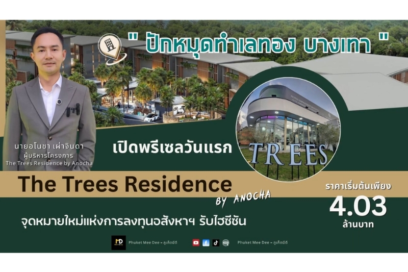🏝️ “ปักหมุดทำเลทอง บางเทา” เปิดพรีเซลวันแรก “The Trees Residence by Anocha” จุดหมายใหม่แห่งการลงทุนอสังหาฯ รับไฮซีซัน ราคาเริ่มต้นเพียง 4.03 ล้านบาท