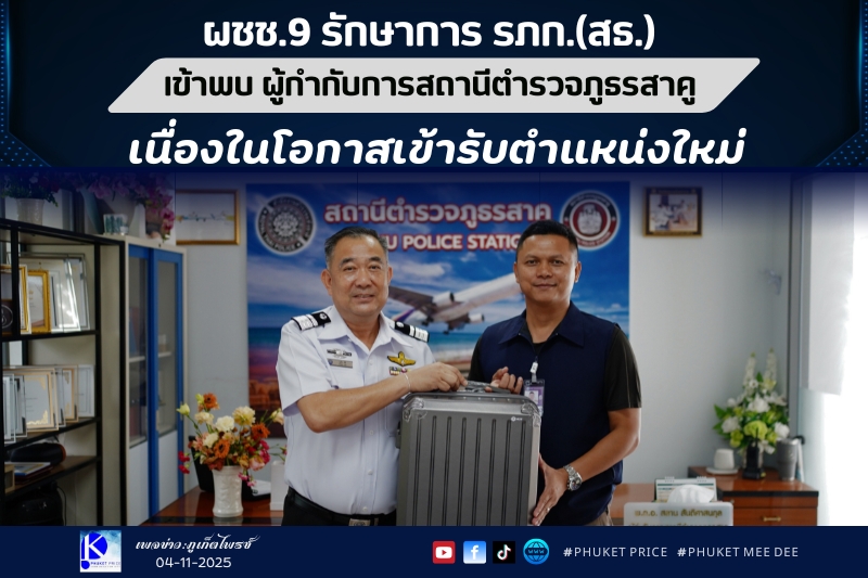 เมื่อวันที่ 3 พ.ย.68 นายอุทัย ศิริ ผู้เชี่ยวชาญ 9 ทอท. รักษาการรองผู้อำนวยการท่าอากาศยานภูเก็ต สายสนับสนุนธุรกิจ (ผชช.9 รักษาการ รภก.(สธ.)) เข้าพบ พ.ต.อ.สลาน สันติศาสนกุล ผู้กำกับการสถานีตำรวจภูธรสาคู
