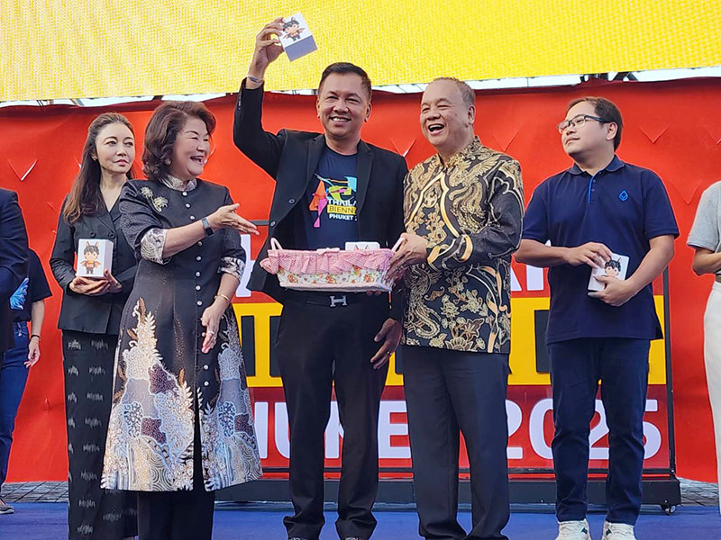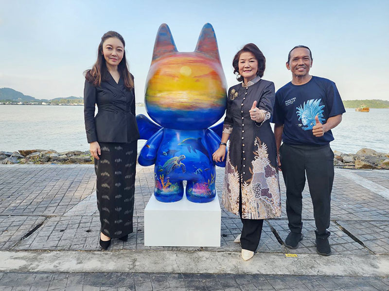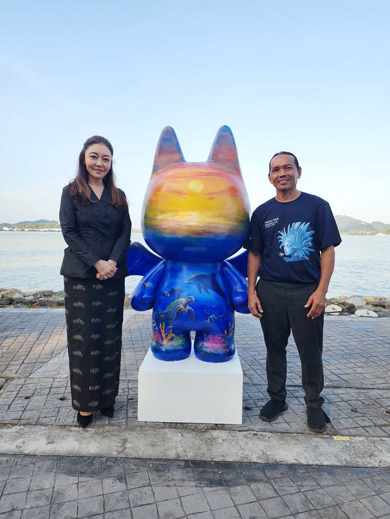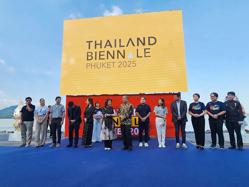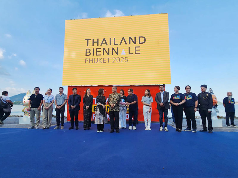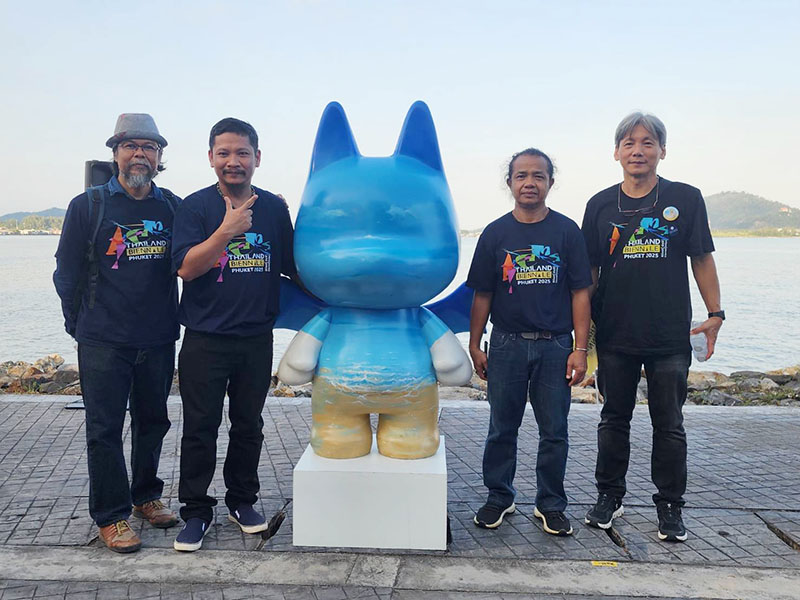 วันที่ 29 พฤศจิกายน 2568 ณ สวนสาธารณะสะพานหิน ภูเก็ต สมาคมศิลป์ภูเก็จจัดพิธีมอบสุดอลังการ 10 อาร์ตมาสคอต “เบี๋ยนฟู่” ค้างคาวนำโชคกับผลงานการเพ้นท์งานศิลป์จาก 10 สุดยอดศิลปินแห่งชาติและศิลปินชื่อดังของไทยแก่ผู้สนับสนุนระดับท๊อปของประเทศ มูลค่ารวมกว่า 5 ล้านบาท เพื่อสนับสนุนและต่อยอดงานศิลปะอันทรงคุณค่าสู่เมืองภูเก็ต ในการจัดงานมหกรรมศิลปะร่วมสมัยนานาชาติ Thailand Biennale Phuket 2025 ภายใต้แนวคิด นิรันดรกัลป์ ตั้งแต่วันนี้ – 30 เม.ย 2569 นำโดยคุณอัญชลี วานิชเทพบุตร นายกสมาคมศิลป์ภูเก็จ คุณเรวัติ อารีรอบ นายกองค์การบริหารส่วนจังหวัดภูเก็ต และสมาคมศิลป์ภูเก็จ