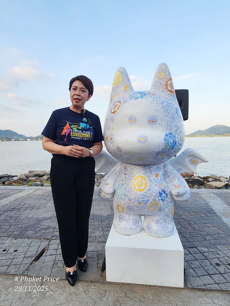 ตามที่จังหวัดภูเก็ตจัดงาน Thailand Biennale Phuket 2025 ซึ่งเป็นเวทีสำคัญในการขับเคลื่อนเศรษฐกิจสร้างสรรค์และการท่องเที่ยวเชิงวัฒนธรรม World Art&Culture Tourism Destination ด้วยแนวคิด “นิรันดร์กัลป์” ถ่ายทอดความสัมพันธ์ของมนุษย์ ธรรมชาติ และการเปลี่ยนแปลงของโลก ผ่านผลงานศิลปินไทย–ต่างชาติรวม 65 คน/กลุ่ม จาก 25 ประเทศ จัดแสดงใน 3 อำเภอของภูเก็ต ได้แก่ อำเภอเมือง อำเภอกะทู้ และอำเภอถลาง รวม 13 ศาลา ตลอด 5 เดือน ตั้งแต่วันที่ 29 พฤศจิกายน 2568 – 30 เมษายน 2569 ซึ่งได้มีการแต่งตั้งให้ “เบี๋ยนฟู่” ค้างคาวนำโชคเป็นมาสคอตประจำงานนั้น