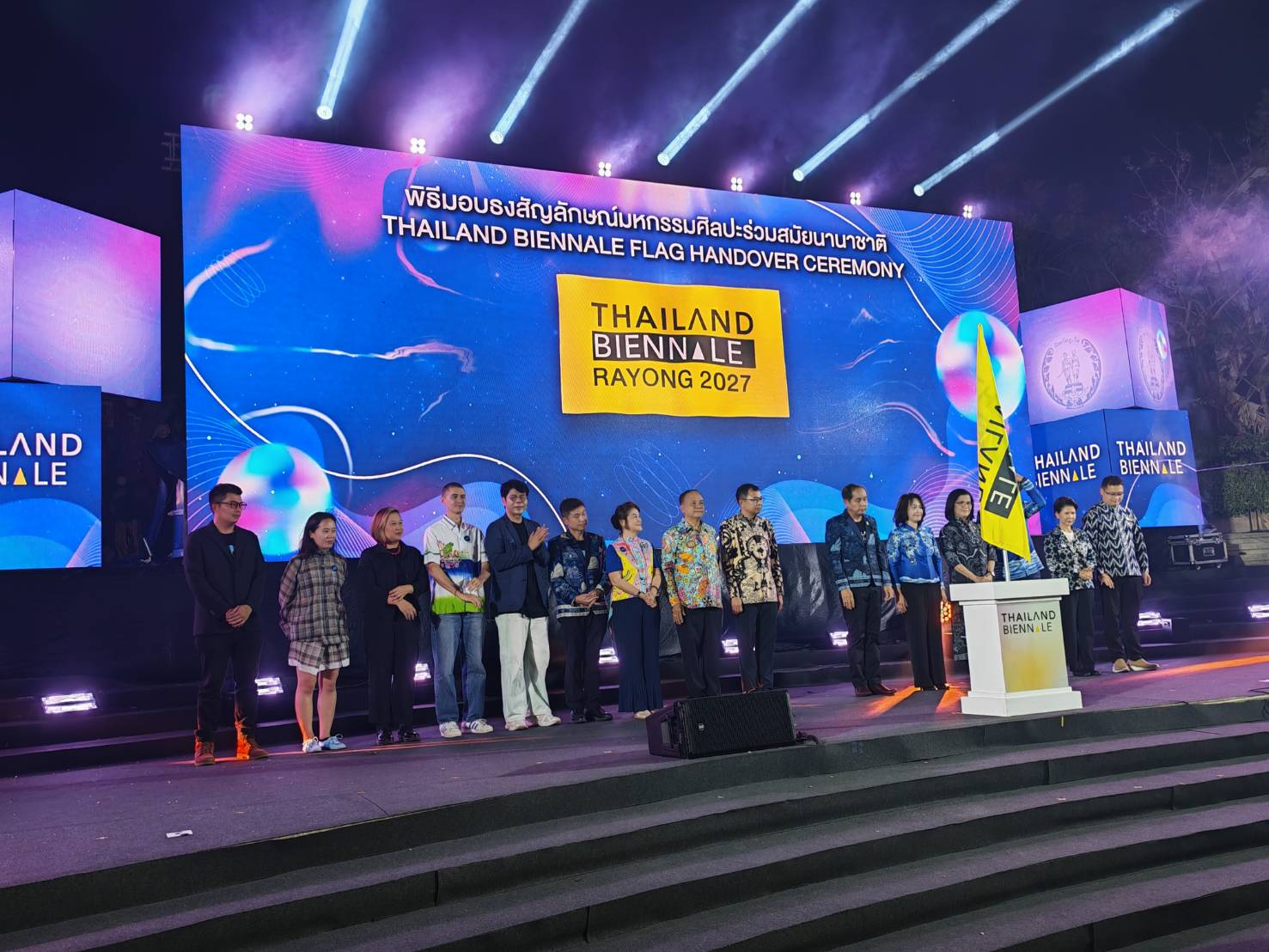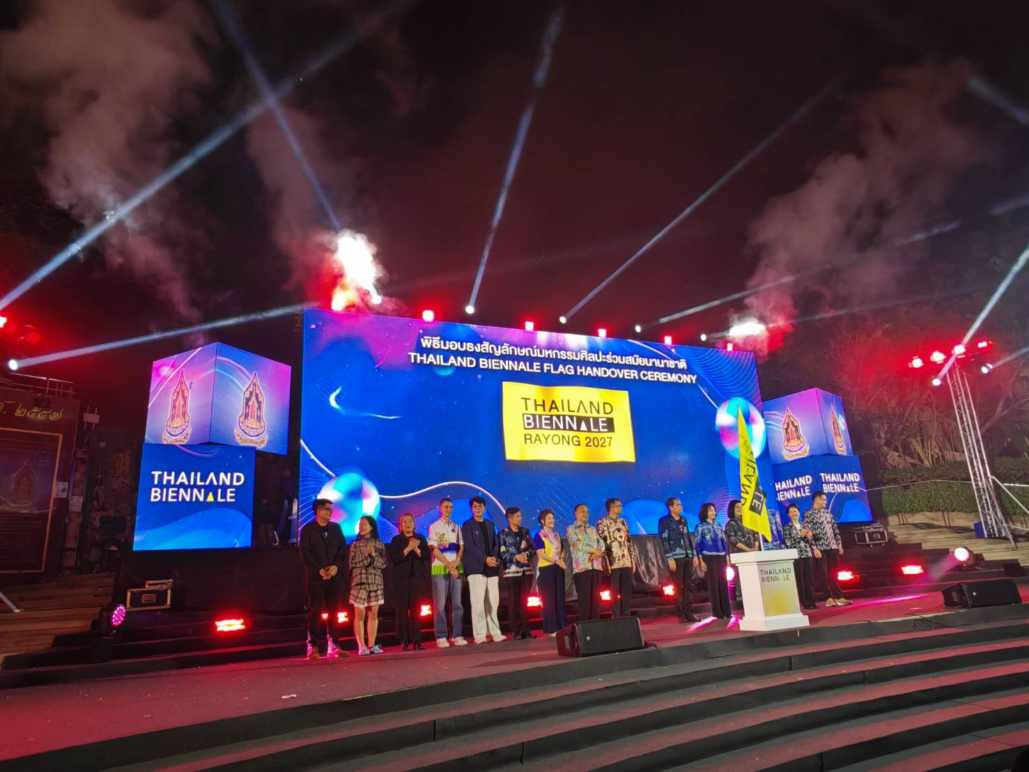 ทั้งนี้ การส่งมอบธงในครั้งนี้ถือเป็นการประกาศความพร้อมของจังหวัดระยอง ในการเป็นเจ้าภาพจัดงาน Thailand Biennale 2027 ซึ่งจะเป็นครั้งที่ 5 ของประเทศไทย โดยมุ่งนำเสนออัตลักษณ์ศิลปวัฒนธรรมภาคตะวันออก ควบคู่แนวคิดสมดุลระหว่างอุตสาหกรรมและสิ่งแวดล้อม เพื่อยกระดับศิลปะไทยสู่เวทีโลก