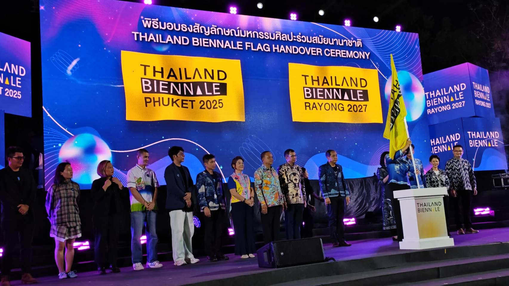 กระทรวงวัฒนธรรม (วธ.) โดยสำนักงานศิลปวัฒนธรรมร่วมสมัย (สศร.) จัดพิธีมอบธงสัญลักษณ์โครงการมหกรรมศิลปะร่วมสมัยนานาชาติ Thailand Biennale ส่งต่อการเป็นเจ้าภาพจากจังหวัดภูเก็ตสู่จังหวัดระยองอย่างเป็นทางการ ท่ามกลางบรรยากาศคึกคักของศิลปินและเครือข่ายวัฒนธรรมทั้งไทยและนานาชาติ