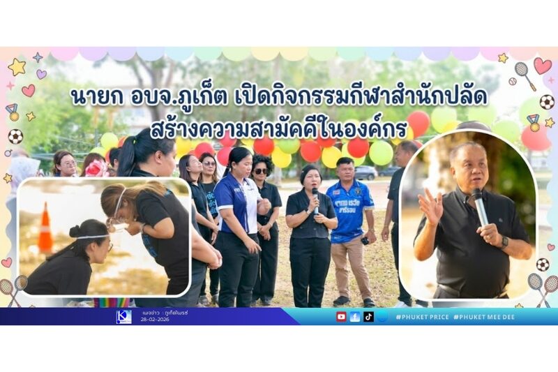 📅 เมื่อวันที่ 27 กุมภาพันธ์ 2569 นายเรวัต อารีรอบ นายกองค์การบริหารส่วนจังหวัดภูเก็ต เป็นประธานเปิดกิจกรรมกีฬาสร้างความรัก ความสามัคคี