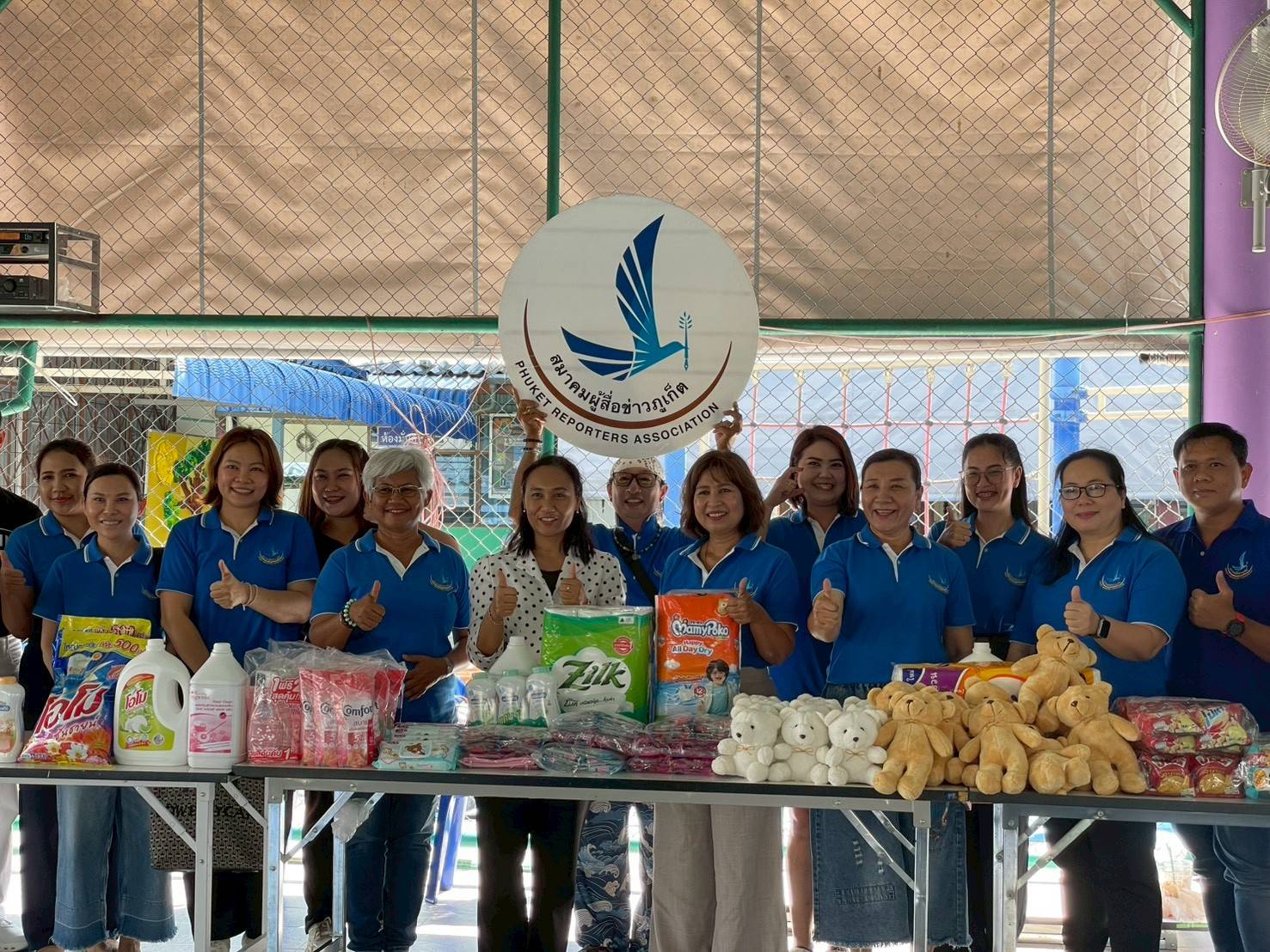 ภายในกิจกรรม นางสาวอำนวย ทองสม นายกสมาคมผู้สื่อข่าวภูเก็ต พร้อมสมาชิก ร่วมมอบสิ่งของจำเป็น อาทิ แพมเพิสเด็ก ผลิตภัณฑ์ทำความสะอาด และของใช้ในชีวิตประจำวัน เพื่อช่วยแบ่งเบาภาระของศูนย์ฯ และผู้ปกครอง พร้อมจัดกิจกรรมสันทนาการและเลี้ยงอาหารกลางวันสร้างรอยยิ้มให้กับน้อง ๆ โดยมีโรงพยาบาลในเครือ BDMS นำตุ๊กตาและชุดเครื่องเขียนมาร่วมสนับสนุน