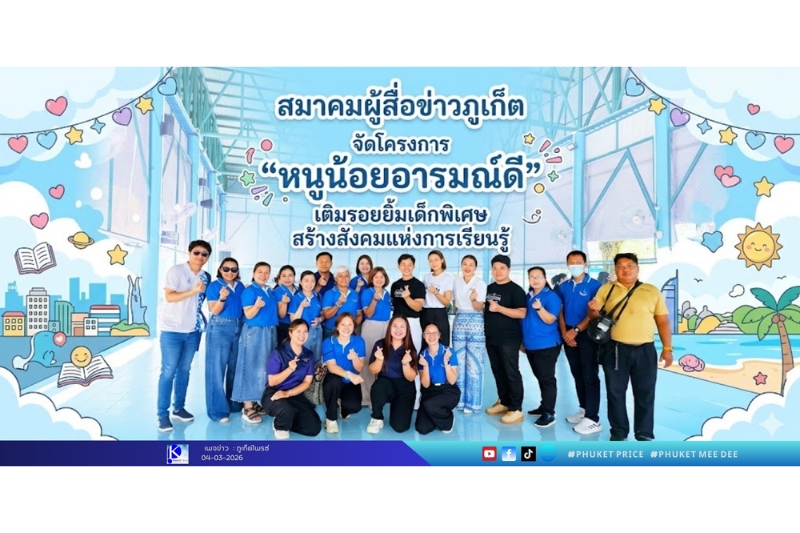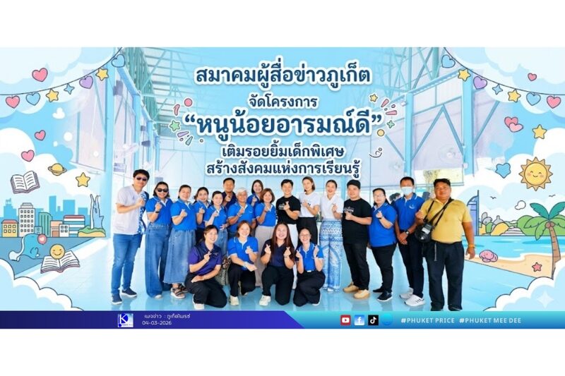 วันนี้ (4 มี.ค. 69) สมาคมผู้สื่อข่าวภูเก็ต ร่วมกับ บริษัท ออริจิ้น พร็อพเพอร์ตี้ จำกัด (มหาชน) จัดโครงการ “หนูน้อยอารมณ์ดี สู่สังคมแห่งการเรียนรู้” ณ ศูนย์การศึกษาพิเศษประจำจังหวัดภูเก็ต อำเภอกะทู้ จังหวัดภูเก็ต เพื่อส่งต่อกำลังใจและสนับสนุนการพัฒนาเด็กที่มีความต้องการพิเศษ