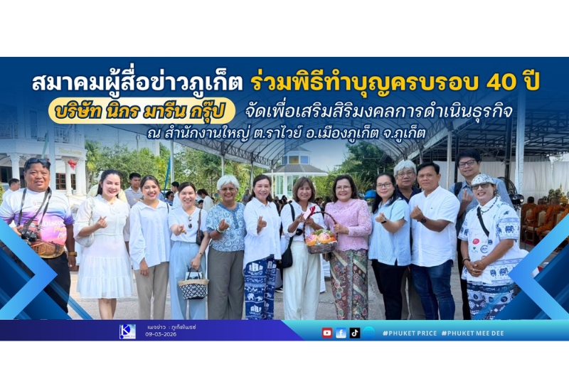 🎤 สมาคมผู้สื่อข่าวภูเก็ต ร่วม พิธีทำบุญครบรอบ 40 ปี บริษัท นิกร มารีน กรุ๊ป จัด เพื่อเสริมสิริมงคลการดำเนินธุรกิจ ณ สำนักงานใหญ่ ตำบลราไวย์ อำเภอเมืองภูเก็ต จังหวัดภูเก็ต