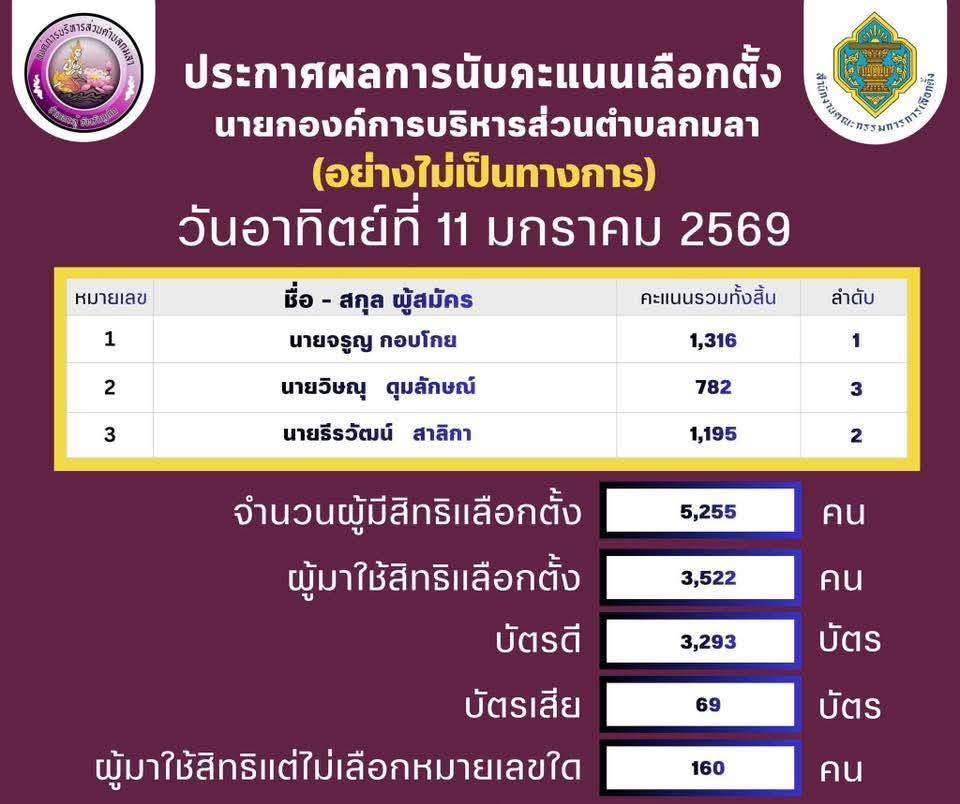 พร้อมกันนี้ ได้มีการเลือกตั้ง สมาชิกสภาองค์การบริหารส่วนตำบลกมลา ครบทุกเขต เรียบร้อยแล้ว ✅