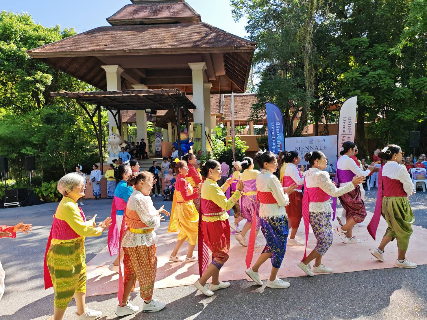 สำหรับ “สุขโข พาวิลเลี่ยน (Sukko Pavilion)” หรือ “ศาลา 4 ภาค” ถือเป็นไฮไลต์สำคัญ ภายใต้แนวคิด “Eternal [Kalpa] – นิรันดร์ [กัลป์]” ที่รวบรวมผลงานศิลปะกว่า 100 ชิ้น จากศิลปินท้องถิ่นทั่วประเทศ ถ่ายทอดเรื่องราวภูมิปัญญา วัฒนธรรม และความงดงามของสังคมไทย ภายในพื้นที่เดียวกับสุขโข สปา ตำบลฉลอง จังหวัดภูเก็ต ท่ามกลางบรรยากาศร่มรื่น ผสานศิลปะไทยดั้งเดิมและงานประติมากรรมกลางแจ้งได้อย่างลงตัว