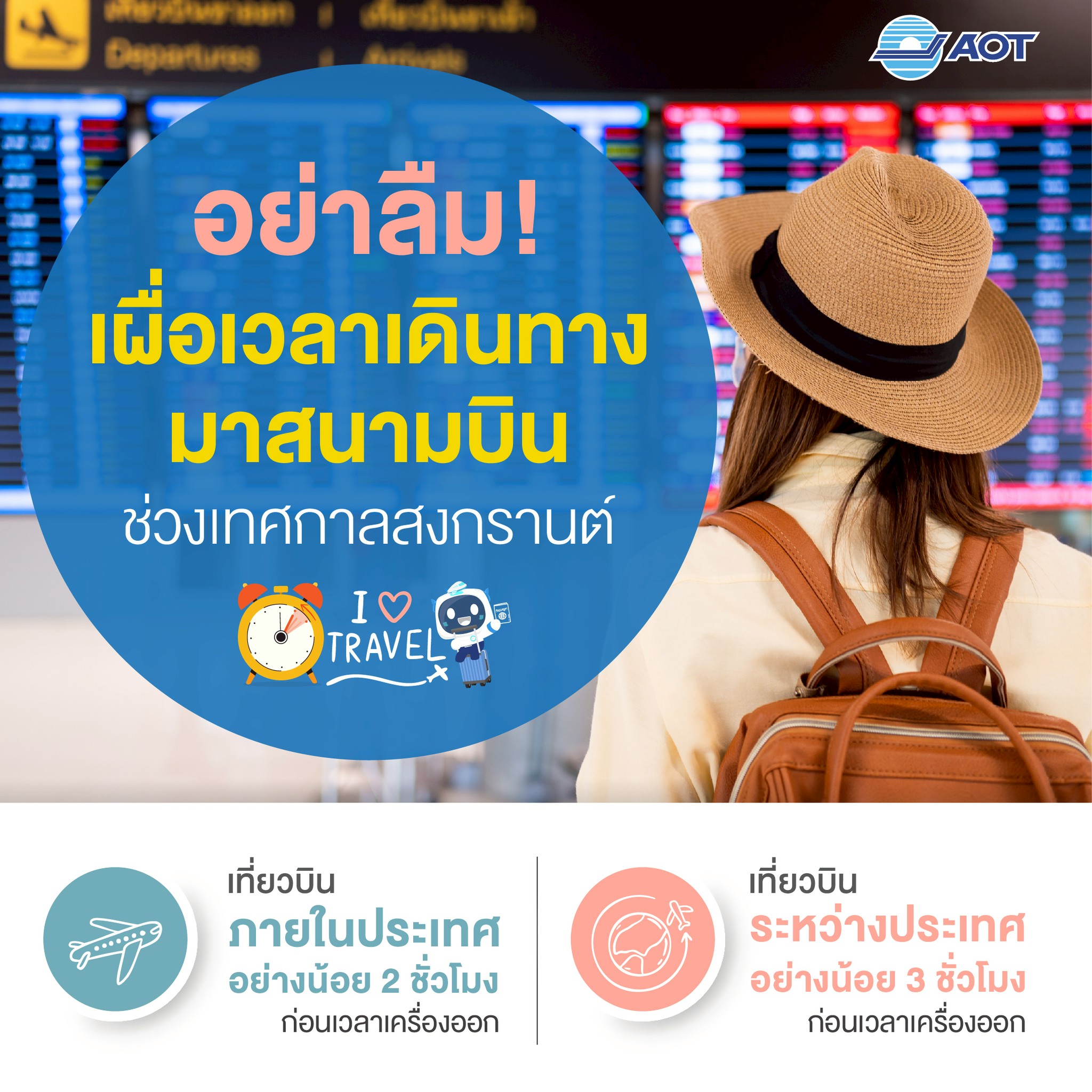 หยุดยาวช่วงเทศกาลสงกรานต์นี้.. อย่าลืม ! เผื่อเวลาเดินทางมาสนามบิน ท่องเที่ยว หรือกลับบ้านก็สุขใจ เดินทางไม่สะดุด