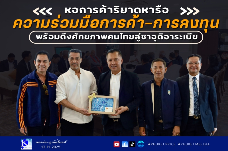วันนี้ 14 พฤศจิกายน 2568) เวลา 09.00 น. ณ ห้องรับรอง ศาลากลางจังหวัดภูเก็ต นายสุวิทย์ พันธ์เสงี่ยม รองผู้ว่าราชการจังหวัดภูเก็ต เป็นประธานให้การต้อนรับและร่วมประชุมกับคณะหอการค้าริยาด ประเทศซาอุดิอาระเบีย ซึ่งเดินทางมาประชุมแลกเปลี่ยนข้อคิดเห็นด้านการค้า การลงทุน และความร่วมมือทางเศรษฐกิจระหว่างไทย–ซาอุดิอาระเบีย โดยมีนายณรงค์ อ่อนอินทร์ หัวหน้าสำนักงานจังหวัดภูเก็ต นางสาววรนิษฐ์ อภิรัฐจิรวงษ์ พาณิชย์จังหวัดภูเก็ต นายสรายุทธ มัลลัม นายสัจจพล ทองสม นายสุขแจนซิงห์ เศรษฐี รองประธานหอการค้าจังหวัดภูเก็ต นางสาวสุนีย์รัตน์ รุจีมาศ รอง ผอ.ททท.สำนักงานภูเก็ต นายมนต์ทวี หงษ์หยก ประธานสภาอุตสาหกรรมจังหวัดภูเก็ต และคุณธเนศ ตันติพิริยะกิจ นายกสมาคมธุรกิจการท่องเที่ยวจังหวัดภูเก็ต พร้อมด้วยหน่วยงานที่เกี่ยวข้องเข้าร่วมต้อนรับคณะผู้แทนจากซาอุดิอาระเบีย ซึ่งประกอบด้วย Mr. Mansour Al-Ajmi Director of International Cooperation Dept., Riyadh Chamber, Mr. Alam Munin President & Chairperson of the Board, TME Institute, Mr. Fairoz Yupensuk Vice President & Chairperson for International Strategy, TME Institute และ Dr. Koddaree Binsen President of the Southern Border Provinces Advisory Council for Administration and Development