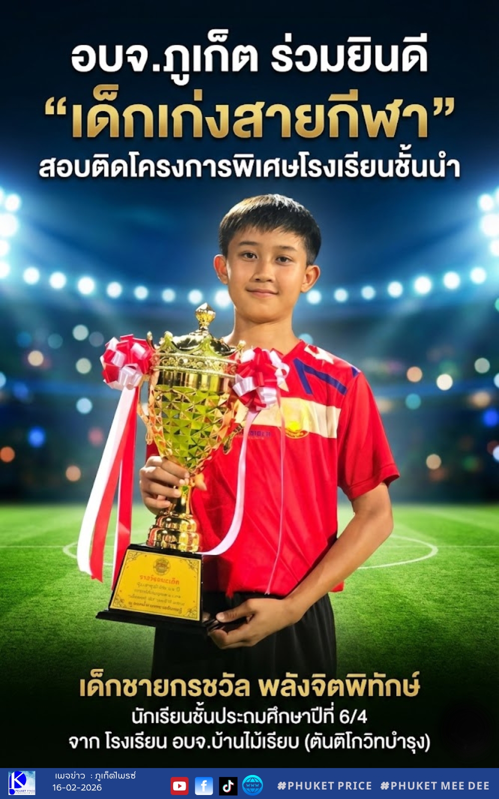 🎓🏅 อบจ.ภูเก็ต ร่วมยินดี “เด็กเก่งสายกีฬา” สอบติดโครงการพิเศษโรงเรียนชั้นนำ ⚽✨