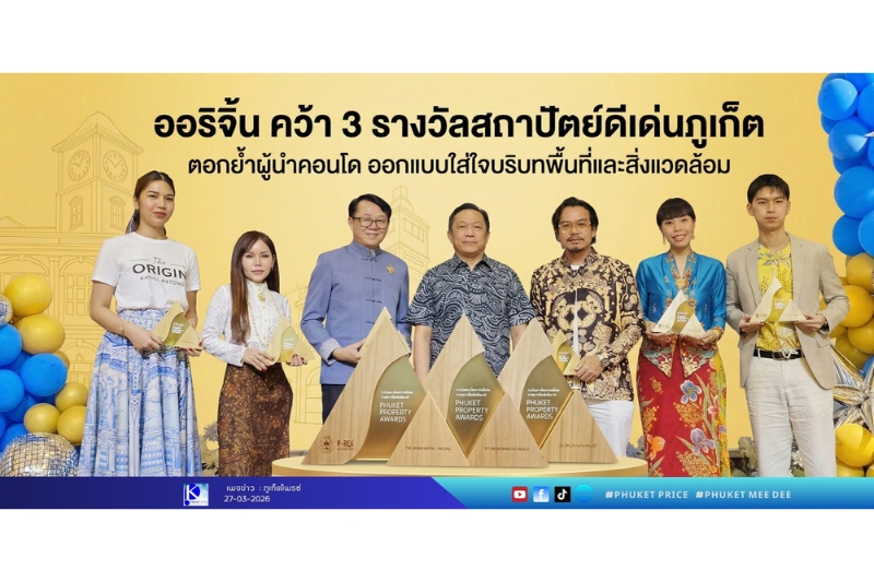 บริษัท ออริจิ้น พร็อพเพอร์ตี้ จำกัด (มหาชน) หรือ ORI คว้า 3 รางวัล สถาปัตยกรรมดีเด่นภูเก็ต ประจำปี 2569 (Phuket Property Awards 2026) ประเภทการออกแบบโครงการคอนโดมิเนียมจาก 3 โครงการ ได้แก่ โซ ออริจิ้น กะตะ ภูเก็ต (SO ORIGIN KATA PHUKET), โซ ออริจิ้น บางเทา บีช (SO ORIGIN BANGTAO BEACH) และ ดิ ออริจิ้น กะทู้–ป่าตอง (THE ORIGIN KATHU – PATONG) ซึ่งสะท้อนแนวคิดการพัฒนาโครงการที่ให้ความสำคัญกับการออกแบบสถาปัตยกรรมที่สอดคล้องกับบริบทพื้นที่สิ่งแวดล้อมและวิถีชีวิตของผู้คนในจังหวัดภูเก็ต