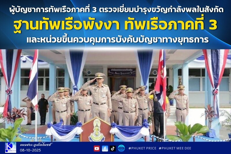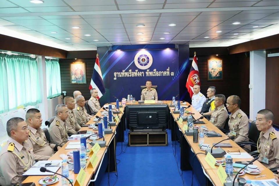 เมื่อวันที่ 7 ตุลาคม 2568 พลเรือโท วีรุดม ม่วงจีน ผู้บัญชาการทัพเรือภาคที่ 3 และ ผู้อำนวยการศูนย์อำนวยการรักษาผลประโยชน์ของชาติทางทะเล ภาค 3 ตรวจเยี่ยมบำรุงขวัญกำลังพลในสังกัด ฐานทัพเรือพังงา ทัพเรือภาคที่ 3 และหน่วยขึ้นควบคุมบังคับบัญชาทางยุทธการ ประกอบด้วย กองพันสารวัตรทหารเรือที่ 4 ฯ กองรักษาความปลอดภัยฐานทัพเรือพังงาฯ กองพันรักษาฝั่งที่ 11 ฯ และ กองพันต่อสู้อากาศยานที่ 22 ฯ เพื่อรับทราบการปฏิบัติงานและเยี่ยมบำรุงขวัญกำลังพล พร้อมรับฟังการบรรยายสรุปเกี่ยวกับปัญหา อุปสรรค และข้อขัดข้องในการปฏิบัติงาน ณ ฐานทัพเรือพังงา ทัพเรือภาคที่ 3 ตำบลลำแก่น อำเภอท้ายเหมือง จังหวัดพังงา