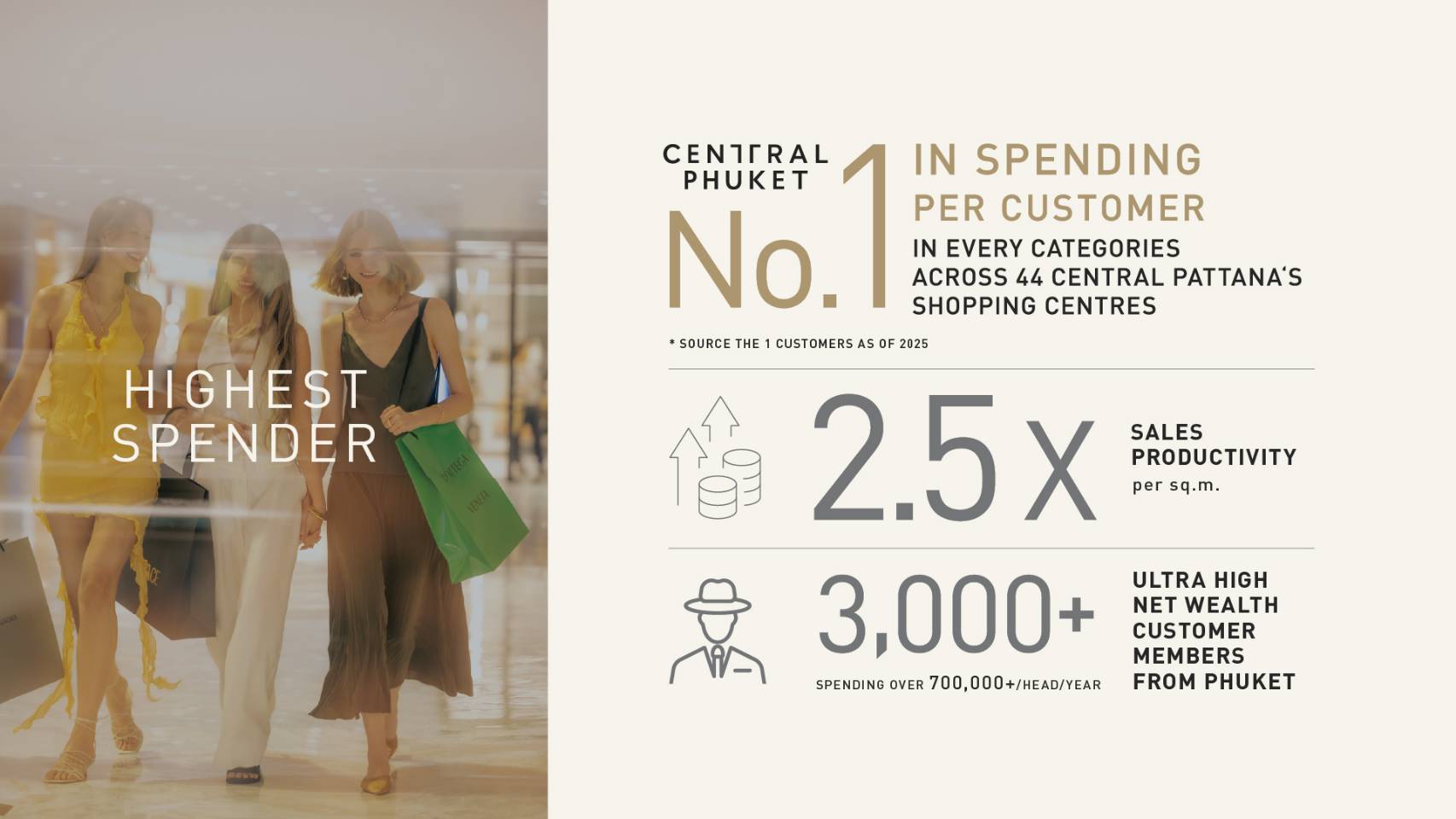 🚩ความสำเร็จของศูนย์ฯ สะท้อนจากแบรนด์ที่ทำยอดขายติด Top Rank ของประเทศอย่างต่อเนื่อง ฐานลูกค้ากำลังซื้อสูงอันดับ 1* และสมาชิก VVIP Tycoon กว่า 3,000 ราย ควบคู่ความเชื่อมั่นจากการลงทุนระยะยาวของกลุ่มเซ็นทรัลในภูเก็ตกว่า 140 โครงการตลอด 20 ปี มากเป็นอันดับ 2 รองจากกรุงเทพฯ พร้อมเครือข่ายบริหาร Luxury Retail ใน 18 ประเทศ 140 เมืองทั่วโลก
