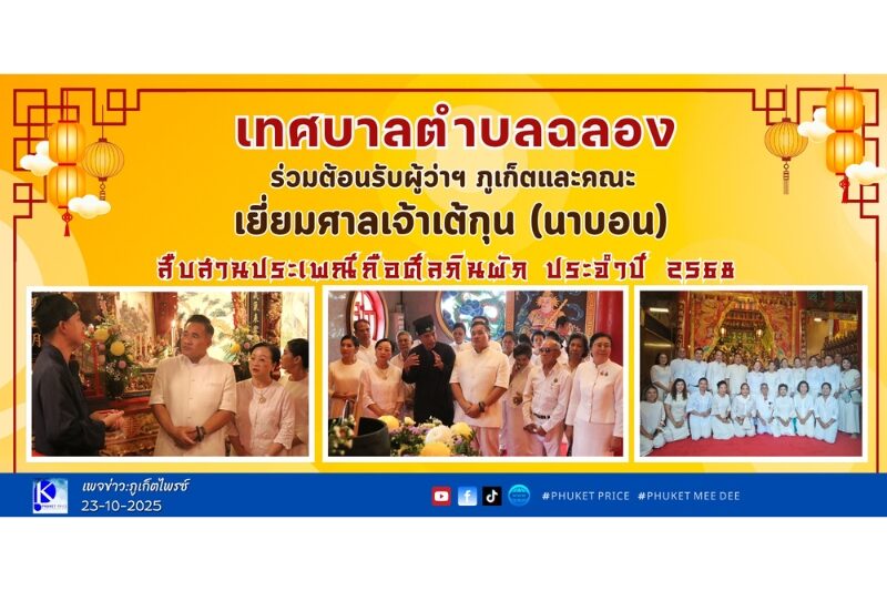 เทศบาลตำบลฉลอง ร่วมต้อนรับผู้ว่าฯ ภูเก็ตและคณะ เยี่ยมศาลเจ้าเต้กุน (นาบอน) สืบสานประเพณีถือศีลกินผัก ประจำปี 2568