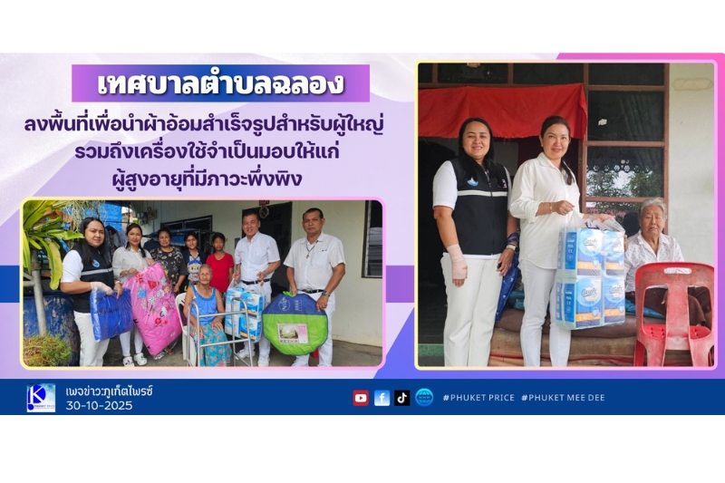 เทศบาลตำบลฉลอง ลงพื้นที่มอบผ้าอ้อมและของใช้ให้ผู้สูงอายุที่มีภาวะพึ่งพิง