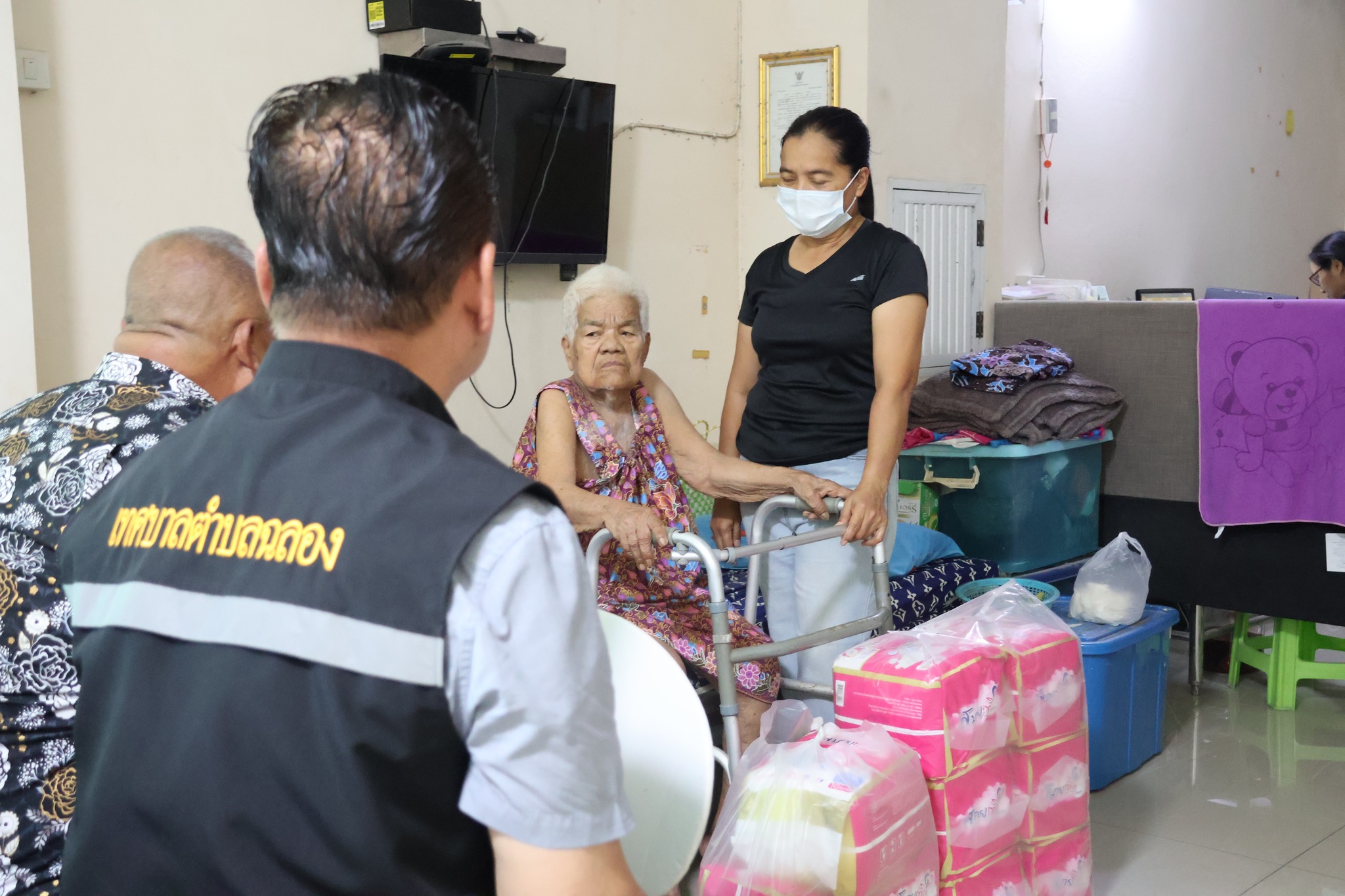 และนางกุลวดี ส่งแสง ผู้อำนวยการกองสวัสดิการสังคม พร้อมเจ้าหน้าที่กองสวัสดิการสังคม และกองสาธารณสุขและสิ่งแวดล้อม ลงพื้นที่เยี่ยมผู้สูงอายุที่มีภาวะพึ่งพิง และผู้ป่วยติดเตียง