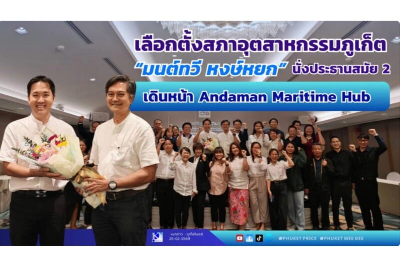 Hotspot Inside News เลือกตั้งสภาอุตสาหกรรมภูเก็ต “มนต์ทวี หงษ์หยก” นั่งประธานสมัย 2 เดินหน้า Andaman Maritime Hub Facebook iconFacebookTwitter iconTwitterLINE iconLine Facebook iconFacebookTwitter iconTwitterLINE iconLine 26 ก.พ. 2026 14:34 4 views