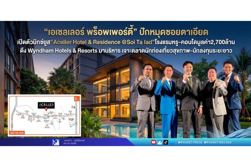 “เอเซลเลอร์ พร็อพเพอร์ตี้” ปักหมุดซอยตาเอียด เปิดตัวมิกซ์ยูส“Aceller Hotel & Residence @Soi Ta Iad”โรงแรมหรู-คอนโดมูลค่า2,700ล้าน ดึง Wyndham Hotels & Resorts มาบริหาร เจาะตลาดนักท่องเที่ยวสุขภาพ–นักลงทุนระยะยา