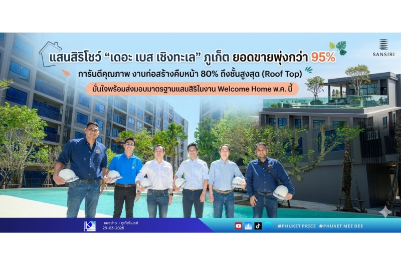 ภูเก็ต (24 มีนาคม 2569) – แสนสิริ ตอกย้ำความเป็นตัวจริงอสังหาฯ ภูเก็ต #ภูเก็ตต้องแสนสิริ โชว์ความสำเร็จปิดท้ายไตรมาสแรก ด้วยยอดขายโครงการ “เดอะ เบส เชิงทะเล” ภูเก็ต (THE BASE Cherngtalay) มูลค่าโครงการ 1,500 ล้านบาท ยอดขายพุ่งกว่า 95% พร้อมสร้างความเชื่อมั่นด้านคุณภาพ โชว์ศักยภาพงานก่อสร้างรุดหน้ากว่า 80% เสร็จสมบูรณ์ถึงชั้นสูงสุดแล้ว (Roof Top) เตรียมเผยโฉมโครงการสร้างเสร็จ พร้อมผนึกกำลัง “พลัส พร็อพเพอร์ตี้” เตรียมส่งมอบบริการหลังการขายมาตรฐานสากล เพื่อสร้างความอุ่นใจให้ลูกบ้านในงาน “Welcome Home” ในเดือนพฤษภาคมนี้