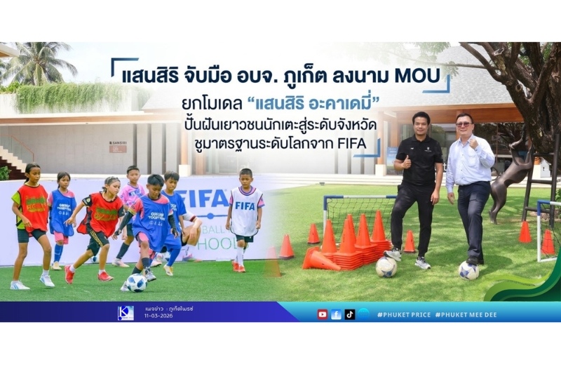 แสนสิริ จับมือ อบจ. ภูเก็ต ลงนาม MOU ยกโมเดล “แสนสิริ อะคาเดมี่” ปั้นฝันเยาวชนนักเตะสู่ระดับจังหวัด ชูมาตรฐานระดับโลกจาก FIFA