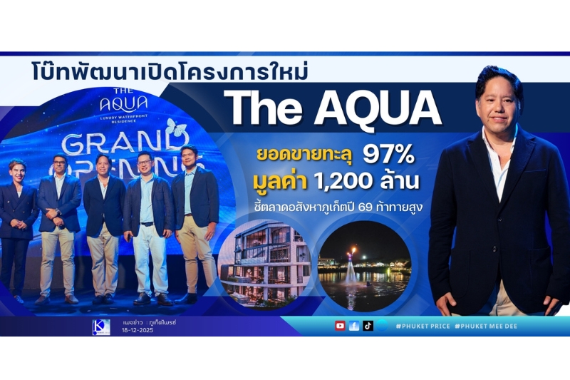 โบ๊ทพัฒนาเปิดโครงการใหม่ The AQUA ยอดขายทะลุ 97% มูลค่า 1,200 ล้าน ชี้ตลาดอสังหาภูเก็ตปี 69 ท้าทายสูง