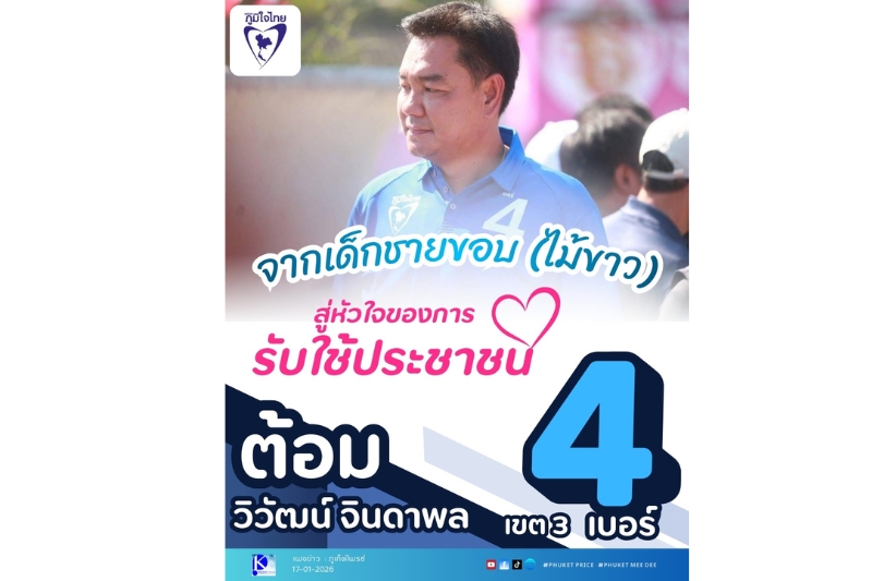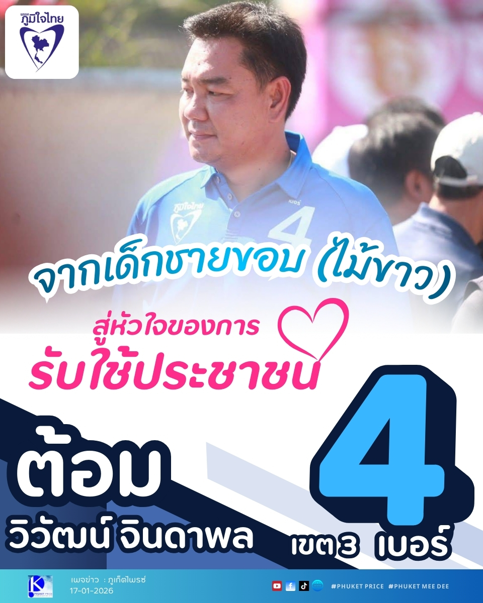 #ต้อมวิวัฒน์ #วิวัฒน์จินดาพล #เบอร์4 #พรรคภูมิใจไทย #เลือกตั้ง69 #ภูเก็ตเขต3 #กะทู้ #ไม้ขาว #สาคู #เทพกระษัตรี #เชิงทะเล #ป่าคลอก #ศรีสุนทร