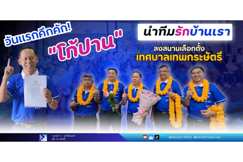 💦 วันแรกคึกคัก! “โก้ปาน” นำทีมรักบ้านเรา ลงสนามเลือกตั้งเทศบาลเทพกระษัตรี ได้หมายเลข 1
