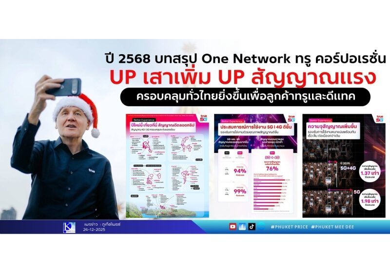 24 ธันวาคม 2568 – ทรู คอร์ปอเรชั่นประกาศความสำเร็จของโครงการ “One Network” ในปี 2568 หลังดำเนินการรวมโครงข่ายทรูและดีแทคเสร็จสมบูรณ์ 100% ถือเป็นก้าวสำคัญของการยกระดับโครงสร้างพื้นฐานด้านการสื่อสารของประเทศ ด้วยการสร้าง “โครงสร้างพื้นฐานดิจิทัล” ที่แข็งแกร่ง ครอบคลุม และมีประสิทธิภาพสูงยิ่งขึ้น เพื่อยกระดับประสบการณ์ใช้งานมือถือของลูกค้าทั้งทรูและดีแทคทั่วประเทศ