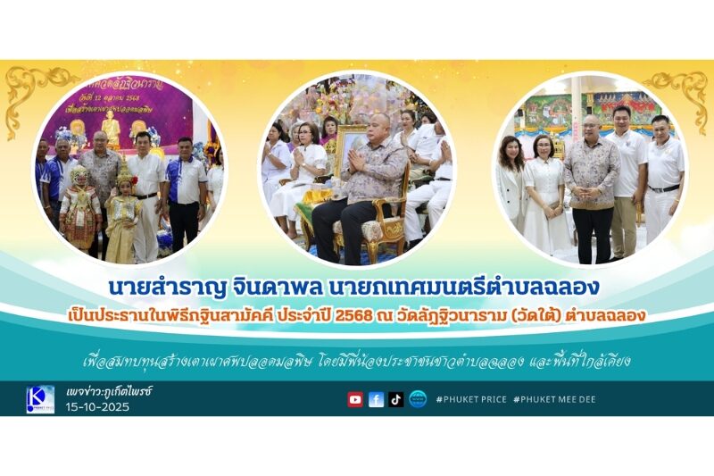 Read moreข่าวกิจกรรมกฐินสามัคคี ประจำปี 2568 วันที่ 11-12 ตุลาคม 2568 นายสำราญ จินดาพล นายกเทศมนตรีตำบลฉลอง เป็นประธานในพิธีกฐินสามัคคี ประจำปี 2568 …