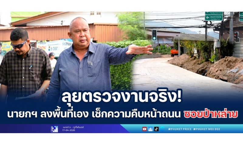Read more“ลุยตรวจงานจริง! นายกฯ ลงพื้นที่เอง เช็กความคืบหน้าถนนซอยป่าหล่าย” วันที่ 16 เมษายน 2569 ณ ซอยป่าหล่าย เทศบาลตำบลฉลอง ดำเนินการตรวจสอบโครงกา…