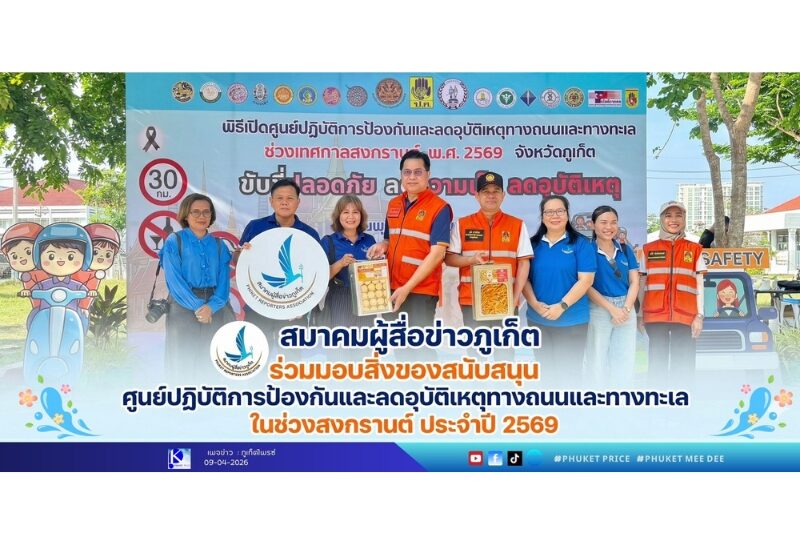 สมาคมผู้สื่อข่าวภูเก็ต ร่วมมอบสิ่งของ สนับสนุน ศูนย์ปฏิบัติการป้องกันและลดอุบัติเหตุทางถนนและทางทะเล ในช่วงสงกรานต์ ประจำปี 2569