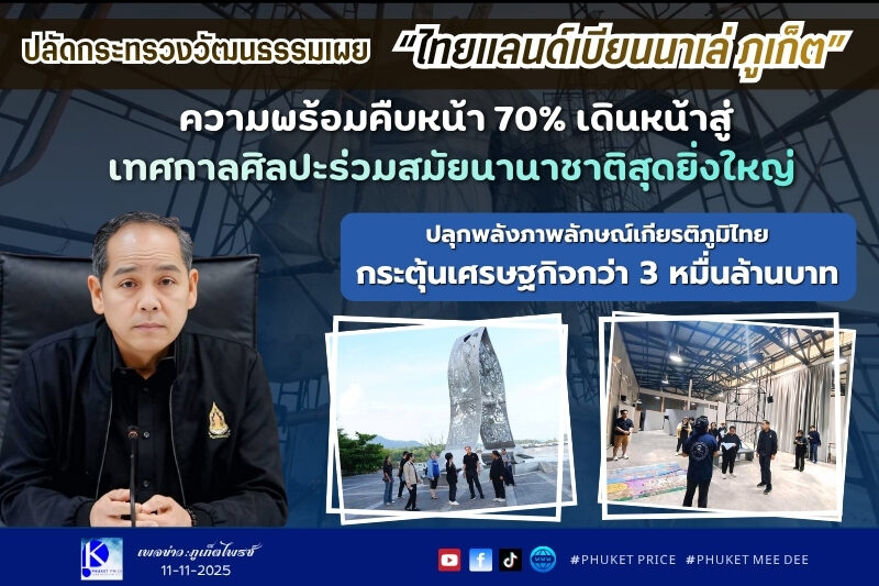 Read moreปลัดกระทรวงวัฒนธรรมเผย “ไทยแลนด์เบียนนาเล่ ภูเก็ต” ความพร้อมคืบหน้า 70% เดินหน้าสู่เทศกาลศิลปะร่วมสมัยนานาชาติสุดยิ่งใหญ่ ปลุกพลังภาพลักษณ์เ…