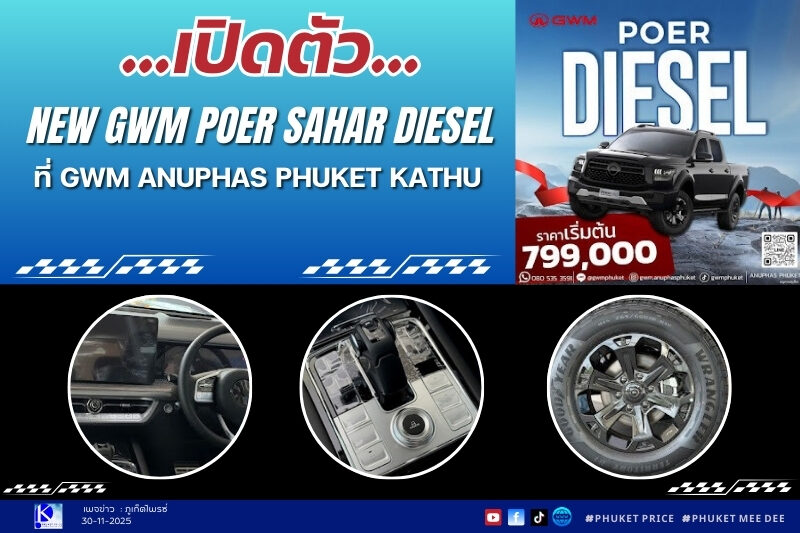 เปิดตัว NEW GWM POER SAHAR DIESEL ที่ GWM Anuphas Phuket Kathu NEW GWM POER SAHAR DIESEL รถกระบะสมรรถนะสูงขนาดใหญ่ระดับพรีเมียม ที่พร้อมตอบทุกการใช้งาน ภูเก็ต, 29 พฤศจิกายน 2568 – GWM Anuphas Phuket Kathu เปิดประสบการณ์ใหม่ให้กับคนรักรถยนต์ ด้วยกา…