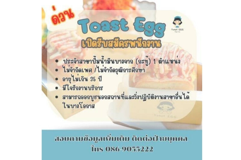 🌿📣ร้าน TOAST EGG เปิดรับสมัครเพื่อนร่วมงานด่วน!