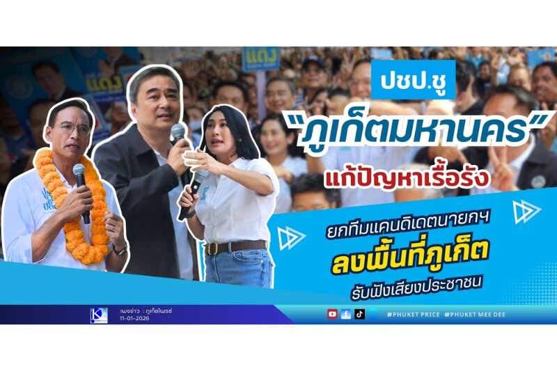 ภูเก็ตคึกคักรับปีใหม่ 2569 เทศบาลนครภูเก็ตชู “วิ่งสามอำเภอ” ปลุกท่องเที่ยว–เศรษฐกิจทั้งเมือง เทศบาลนครภูเก็ตเดินหน้ากระตุ้นเศรษฐกิจและการท่องเที่ยวช่วงปลายปี 2568 ต่อเนื่องต้นปี 2569 เปิดแผนกิจกรรมหลากหลายรูปแบบ โดยมีไฮไลต์สำคัญคือกิจกรรม “วิ่งเชื่…