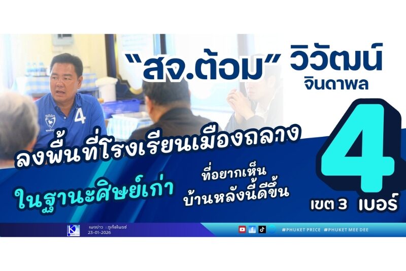 🔴“สจ.ต้อม” วิวัฒน์ จินดาพล ผู้สมัคร สส.ภูเก็ต เขต 3 เบอร์ 4 ลงพื้นที่โรงเรียนเมืองถลาง ในฐานะศิษย์เก่าที่อยากเห็นบ้านหลังนี้ดีขึ้น!